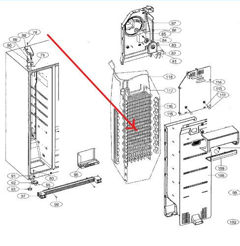 La résistance de dégivrage se trouve derrière l'évaporateur congélateur.